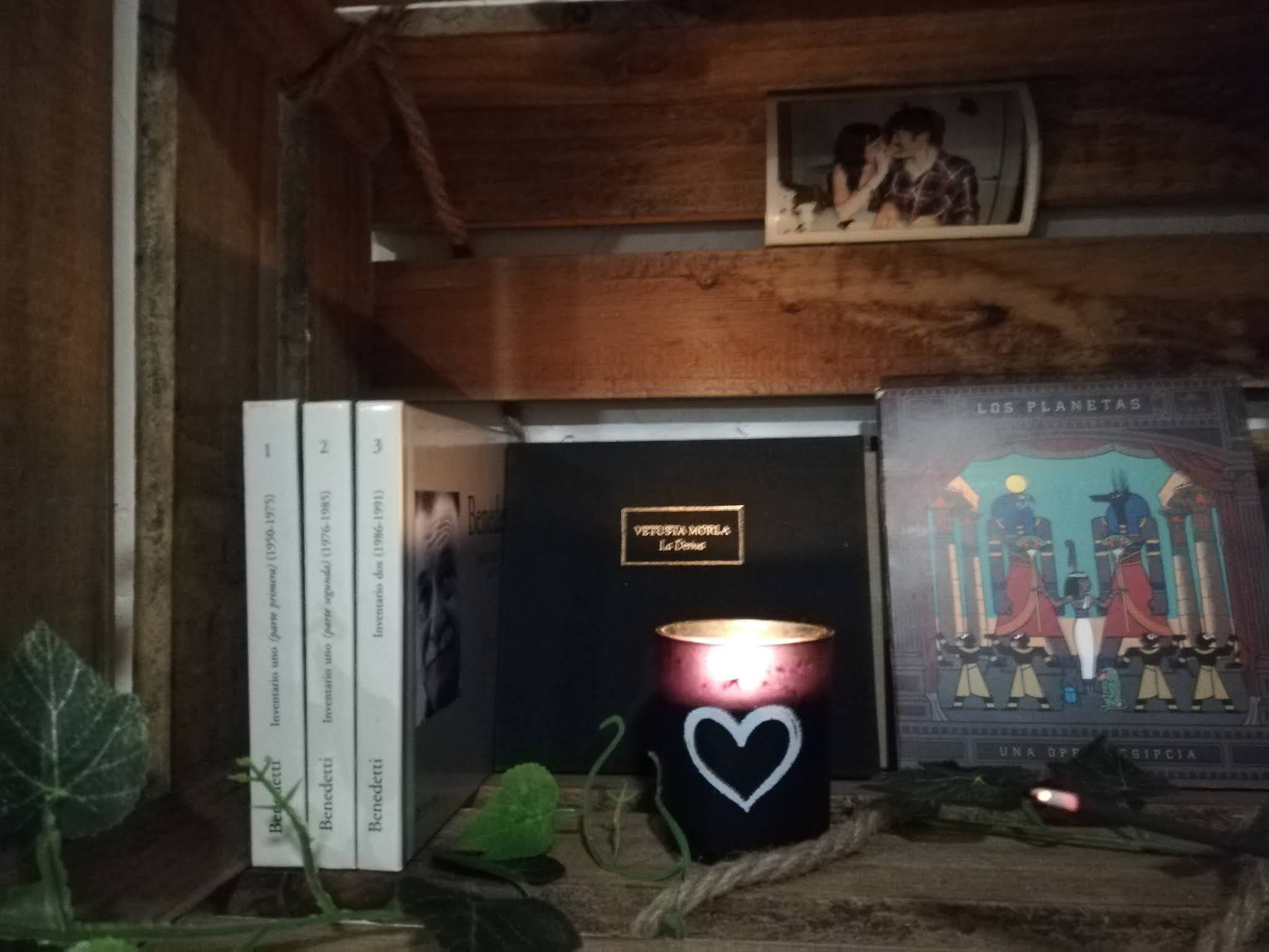Es una cajita de cartón donde venían velas, está moldeado con base de cemento, pegado un ❤️ y otro al igual que las letras, serigrafiadas antes de secado, pintado en blanco y con base de cartón.Envoltorio